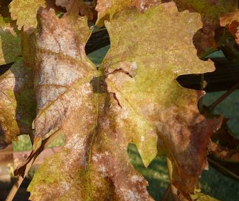 Another common pest on grape leaves is the Skeletonizer catapillar. These black and yellow striped catapillers hatch from eggs laid on the underside of the leaves, and suck all the juice out of the leaves. The only thing left once they are done is the leaf's "skeleton".